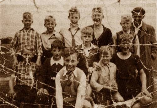 Op de foto achterste rij v.l.n.r.: Evert Glismeijer, Evert v.d.Heide, Joop v.d.Pol, Niek van Egdom, Ben Nooteboom en Joop.Bloemendal (jeugdleider).