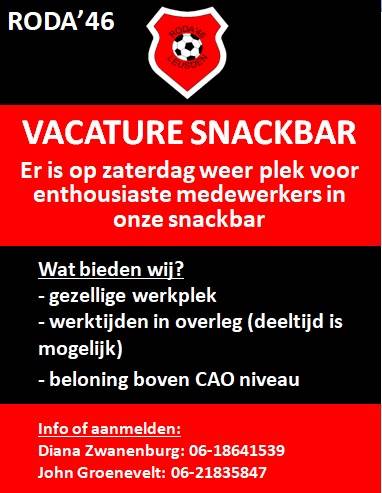 De snackbar van Roda'46 dreigt op zaterdagen gesloten te blijven, omdat er geen medewerkers zijn.