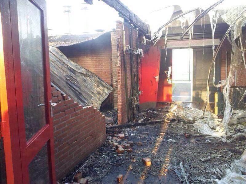 De volgende ochtend is de aanblik van het grotendeels verwoeste gebouw uiterst mistroostig. Het stinkt naar brand. Alles is zwartgeblakerd. Delen van de kunststof lichtkoepel hangen naar beneden. Bakstenen muurtjes zijn kromgetrokken en staan op omvallen of liggen al op de grond. Het dak is grotendeels naar beneden geklapt. Her en der komen er nog wat dingen onderuit. Het is nauwelijks herkenbaar. De puinhopen walmen nog, vanwege het vele water dat door de brandweer is gespoten. De warmte van het pas gedoofde vuur komt je tegemoet. Betreden van het gebouw kan niet. Veel staat op instorten.