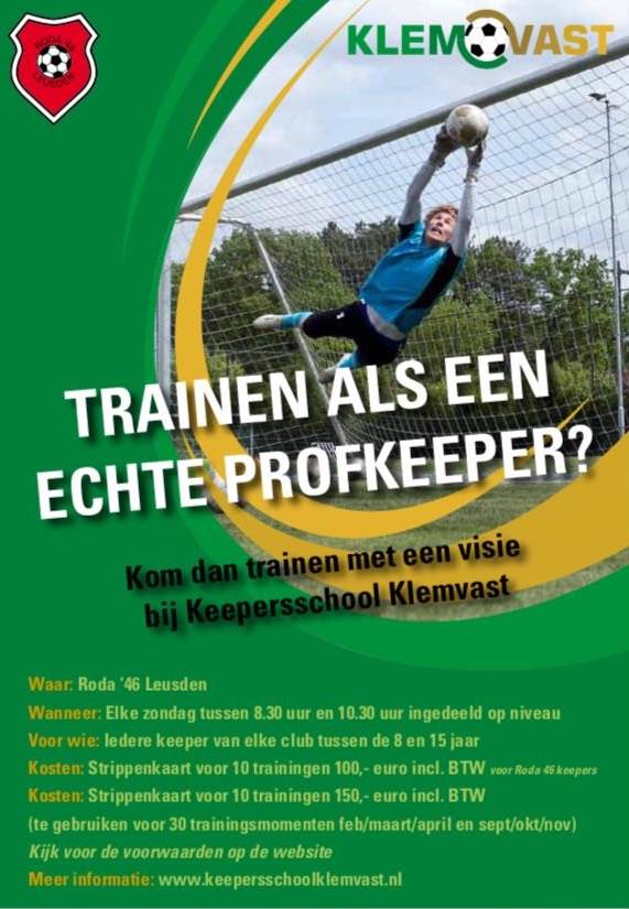 Roda '46 gaat de samenwerking aan met Keepersschool Klemvast om op de zondagochtenden trainingen te gaan verzorgen.