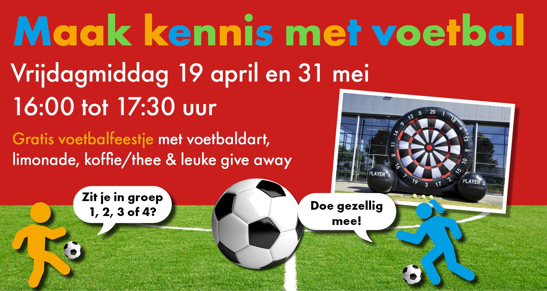 Het belooft een voetbalfeestje te worden met een voetbaldart, limonade en een give away.