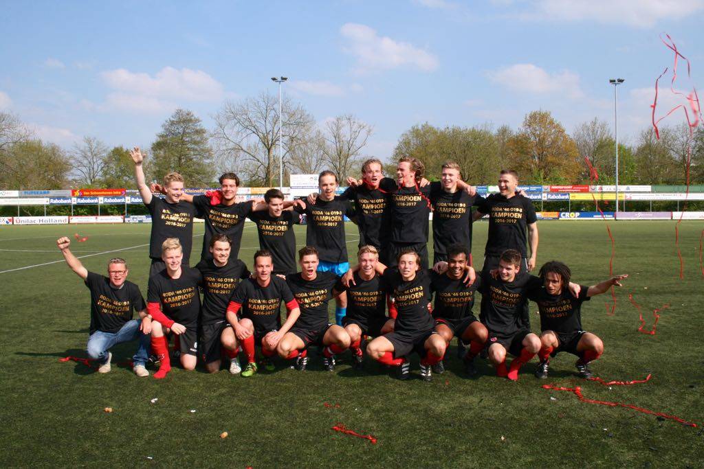 Door met liefst 10-1 te winnen van VOP JO19.1 heeft Roda'46 JO19.1 de titel gepakt in de 2e klasse. De ploeg promoveert hierdoor naar de 1ste klasse. Met nog een wedstrijd te spelen is de ploeg van Harry van Soeren en Alfons Houtveen niet meer in te halen door de concurrentie.