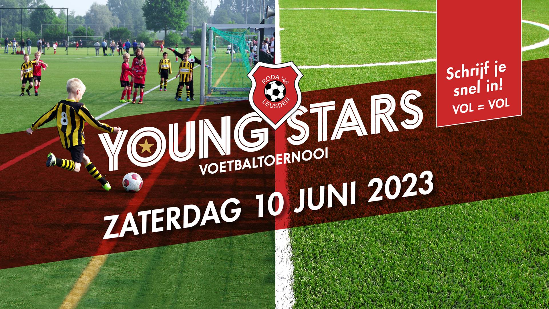 Op zaterdag 10 juni 2023 organiseert Roda '46 te Leusden het Young Stars voetbaltoernooi voor jongens en meiden O8, O9, O10, O1 en O12. Na de succesvolle eerdere edities gaan we er ook dit jaar weer een leuk en sportief toernooi van maken. Graag nodigen wij de jeugdteams uit de genoemde categorieën van uw vereniging uit om aan dit evenement mee te doen.