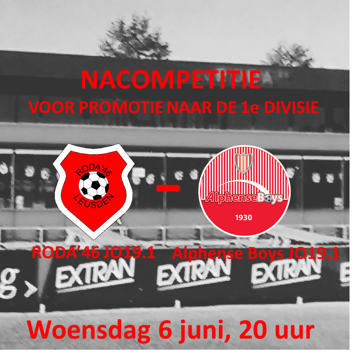 • Woensdag 6 juni: Nacompetitie voor Roda'46 JO19.1