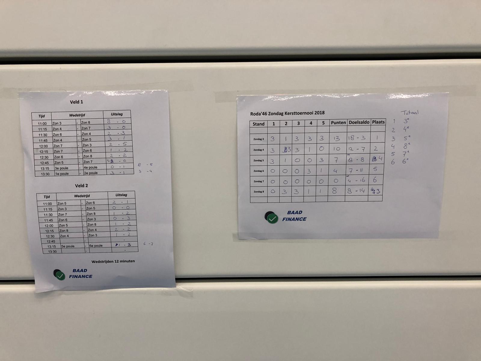 op Zondag 23 december was de eerste "jaarlijkse" zaalvoetbal toernooi voor de zondag elftallen dat gesponsord werd door BAAD Finance Administratiekantoor. Deelnemers waren het derde t/m achtste team.