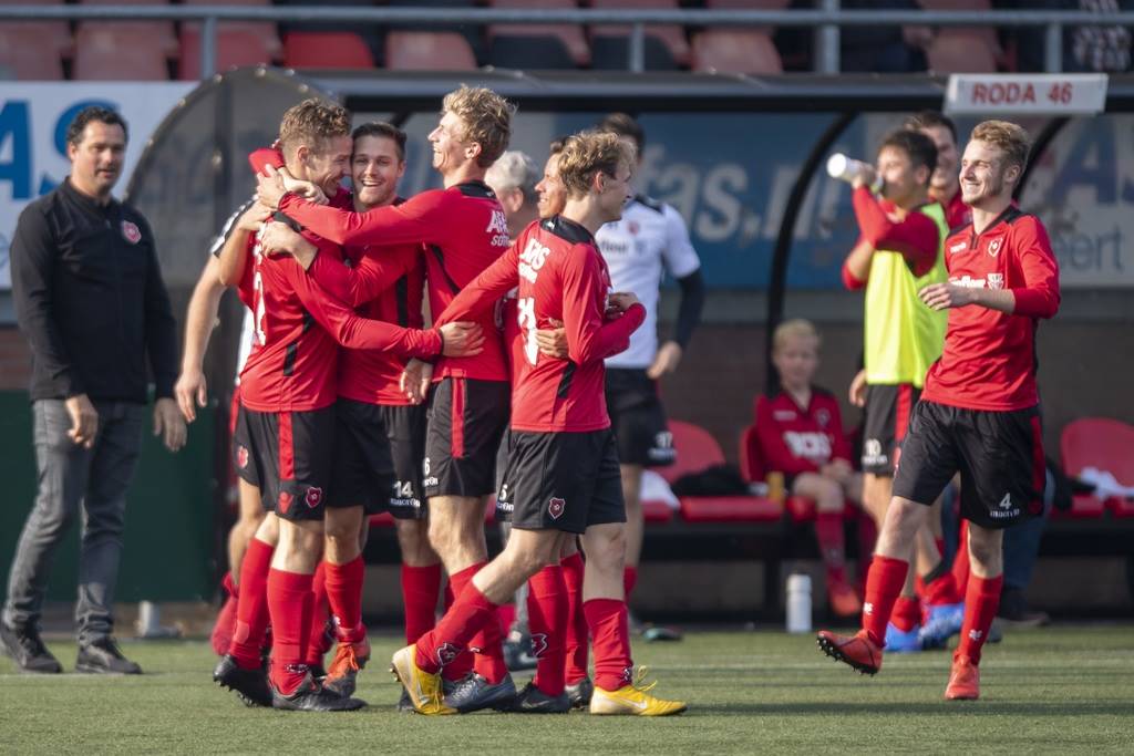 Bij Roda'46 louter lachende gezichten, niet in de minste plaats bij coach Jeroen Jooren. ,,We hebben meer dan een jaar naar deze zege toegeleefd", wees Jooren op het vorige, vroegtijdig afgebroken 'coronaseizoen'. ,,We hebben de jongens die we van de zaterdagtak erbij kregen ondertussen wel goed in kunnen passen. We hopen dit seizoen sowieso uit de degradatiezorgen te blijven."