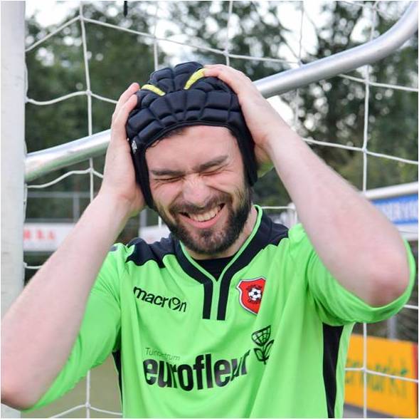 LEUSDEN Tot twee keer toe liep Rick Schoonderbeek een hersenschudding op tijdens een wedstrijd. De doelman van Roda'46-zondag had daar zoveel hinder van dat hij bijna een jaar rust nam. Sinds dit seizoen is de 26-jarige Leusdenaar terug onder de lat. Maar wel met een keepershelm op. ,,Die verplichting heb ik mezelf opgelegd. Ik wil niet weer een jaar met hoofdpijn rondlopen.''